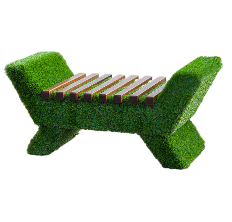 • Искусственный газон сверху покрывает всю конструкцию.